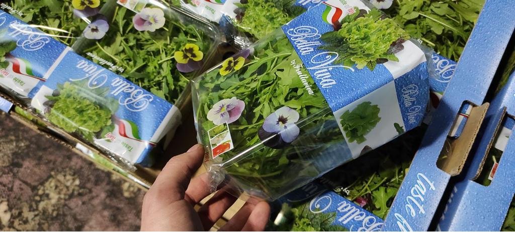 | MIX: baby lettuce, baby spinach, rocket salad, edible flowers, corn salad, bull's blood, red mizuna, aromatic herbs, yellow chard, mini green&red lollo |